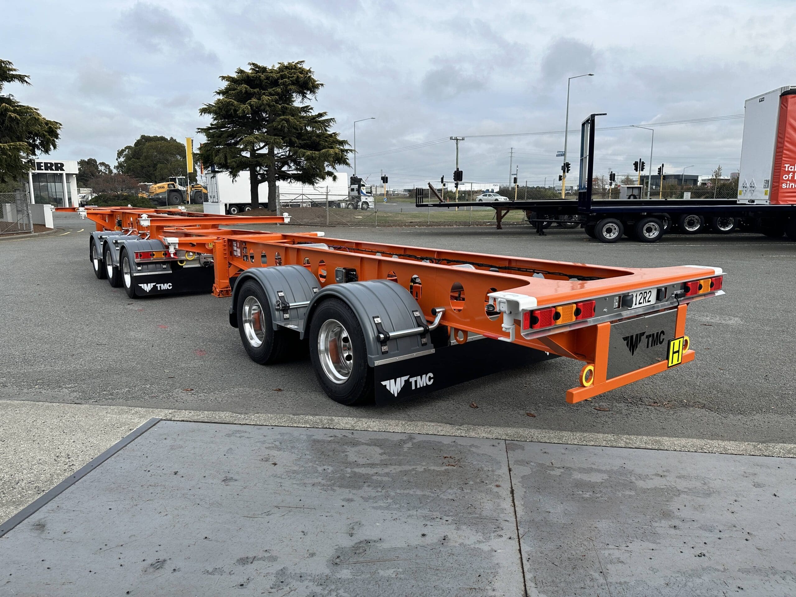 To transport Dangerous Goods or ISO tank containers, a DG-compliant tank skeletal (or ISO tank chassis) is required. These are purpose-built and certified to safely carry hazardous or bulk liquid loads under New Zealand’s Hazardous Substances Regulations 2004 and the WorkSafe Tank Wagon Codes of Practice, covering design, venting, shut-off, earthing, and rollover protection.